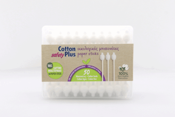 COTTON PLUS ΠΑΙΔΙΚΟΙ ΩΤΟΚΑΘΑΡΙΣΤΕΣ ΑΣΦΑΛΕΙΑΣ 50τεμ. - (FLAT BAZAKI) (PAPER STICK)