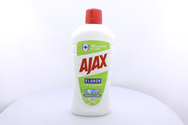 Η μοναδική σύνθεση του AJAX KLORON LEMON συνδυάζει τη γνωστή καθαριστική σύνθεση του AJAX και την άμεση δράση της χλωρίνης, χαρίζοντας αστραφτερή καθαριότητα σε όλο το σπίτι. Καθαρίζει σε βάθος και διαλύει δύσκολους λεκέδες λίπους. Λευκαίνει και καθαρίζει σε βάθος με την δύναμη της χλωρίνης. Απομακρύνει δυσάρεστες οσμές και αφήνει ευχάριστο άρωμα σε λεκάνες, κάδους...
